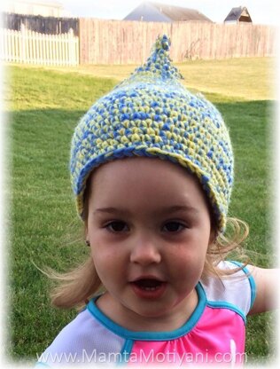 This pixie hat also resembles like elf and gnome! It will make a great costume for any occasion. The pattern is very easy and even a beginner can make this beanie very fast.