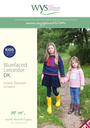 Kids Textured Jumpers in West Yorkshire Spinners Bluefaced Leicester DK is a Knitting pattern by West Yorkshire Spinners, available as a Leaflet and includes instructions in English. Super fun to make, this pattern could be your next masterpiece!