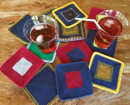 Mit einer hübschen Flasche Wein oder Sirup sind sie ein kreatives Last-Minute-Geschenk für Gartenfest, Geburtstagsgrillen oder Einzugsparty. Die quadratischen "Porto Quadros" sind auch ein perfektes Projekt für den Urlaub: 150 g Garn (drei Farben), Anleitung und Häkelnadel einpacken und bis zu 10 Untersetzer entstehen lassen - mit ganz viel "Wollzeit" und den Füßen im Sand :-)