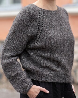 Untuva Pullover is a simple raglan sleeved pullover, designed for fluffy dk weight yarn that knits to chunky weight gauge. The pullover is as light as a feather.