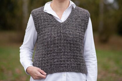 Untuva Slipover is a unisex basic slipover featuring an easy textured stitch pattern. The slipover is knitted from the top-down. The sample yarn is dk weight but knits up to bulky weight gauge. Choose yarn carefully and swatch to get the right gauge.