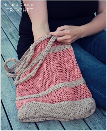 Design features sturdy bottom and knit-look horizontal piping for structure.