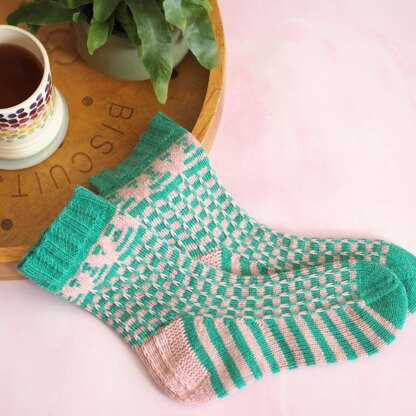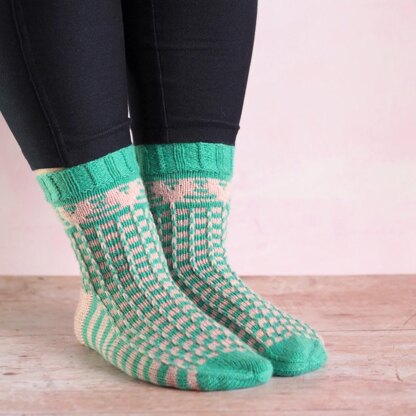 Imagine hearts, balloons and joyful colours, and then the name Uplifting might make sense. The pattern is created using only slipped stitches, making it an easy pattern to knit. Uplifting is worked from the top down using 4 ply / fingering weight yarn.