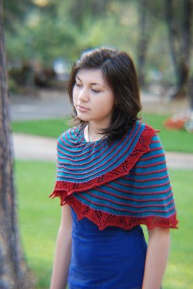 A simple shawl with contrasting stripes and lace. Not alot of concentration needed for this makes it a perfect project for watching Persuasion for the 20th time.