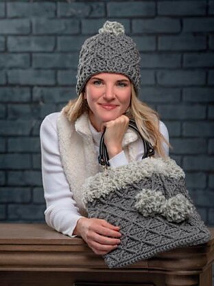 This matching Uptown Hat & Tote set will help keep you nice and warm in a very fashionable way! The diamond lattice stitching is much easier than it appears, especially when using Bonnie's complete video tutorial.