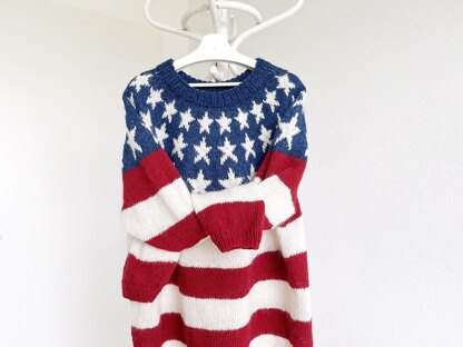 US Flag sweater is a combination of two patterns — alternating red and white stripes (seven stripes, starting and ending with red) and white stars on a blue background on the yoke. Body and sleeves are worked in the round from lower edge to underarms, then joined to work yoke in the round. Round begins at left side of body. On yoke, round begins on the left side of back at the joining of body and sleeve. In the pattern you will find a table of sizes, basic measurements and calculations. This will make it easier for you to guide yourself when working on your sweater. The table is versatile and can be used to work on any lopapeysa. All measurements are given in US and metric.