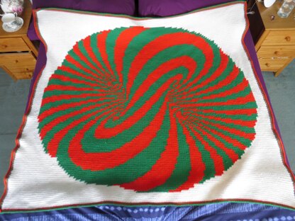 I love those graphics that trick the brain into thinking it's seeing something in 3-D that is really two dimensional and really wanted to recreate such an image in blanket form. I chose two contrasting colours to really bring out the illusion. It makes it hard to properly focus on the image, almost like it's constantly moving. It's a really fun effect and is as enjoyable to look at as it is to make it!