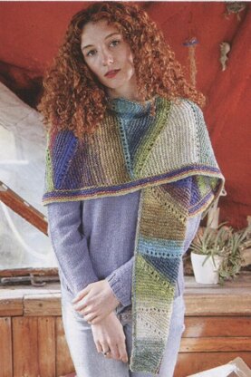 This shawl is worked in short row triangles in two pieces, which are joined using a three needle bind off before stitches are picked up for the borders, showing off the beautiful color changing yarn.