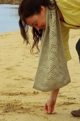 It is knit seamlessly and features an easy to work lace pattern. It can be knit in three different sizes and works up quickly at a looser tension.