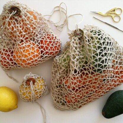 Make your own reusable produce bags with this easy crochet pattern. It has a unique V stitch pattern for the body, a tighter stitch for the base to keep your veggies safe and a drawstring to keep everything inside whilst you shop.