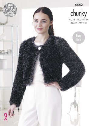 V & Round Neck Cardigans in King Cole Tinsel Chunky - 4442 - Downloadable PDF