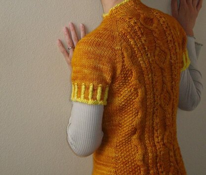 Each cable and rib are simple and fun to knit, I guarantee you will never be bored! The center round cable in bright orange color reminds me of Valencia oranges, so I named it after this. While the front has simple ribs in the center.