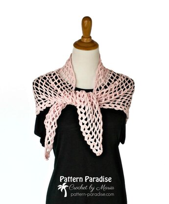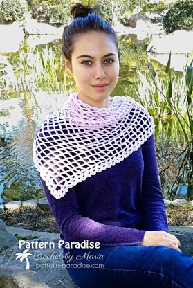 This simple and elegant shawl/wrap is the perfect example of how sometimes less is more! The open lace design lends itself to many different yarns and makes it the perfect piece to accessorize tops, dresses, coats and more.