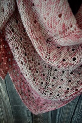 Valley Snow is knit from the top down starting with a garter tab cast on. From there, the increasing is done at both edges and on both sides of the center spine. The lace is knit in three different sections and uses the same wrap stitches, which makes this shawl so easy to memorize!