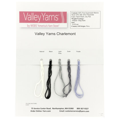 We offer color cards of many our Valley Yarns lines. Each card includes generous samples of each color in the yarn line.