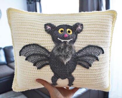 Bat sofa cushion/ pillow crochet pattern. A great idea to decorate your house this Halloween or make a perfect gift to your family and friends. The pattern is written in English and uses UK crochet terms.