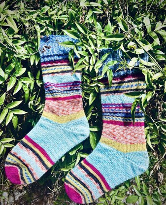 These are vanilla socks (plain stockinette) with a simplified shadow wrap short row heel method and my very own take on a rounded toe.