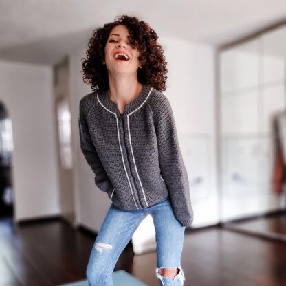 The Varsity Jacket has a top-down construction with a positive ease of about 18 cm around the bust circumference. The raglan increases are made individually for sleeves and body which will give you the opportunity to adjust the increases according to desired sleeves’ or body’s circumference.