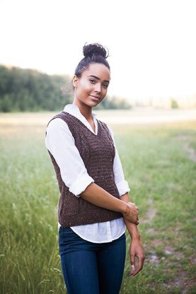 A preppy, collegiate-inspired sweater vest with updated details and feminine shaping, Vaughan is the perfect piece to move your wardrobe from summer to fall. Cable columns and a textured center panel hold your interest, but no sleeves means you’ll be finished that much sooner! Pop it on over a crisp pullover or layer it under a jacket for extra warmth, you’ll find yourself reaching for this versatile piece again and again.