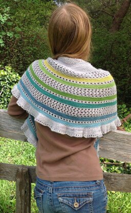 Vedru is a classic top down crescent shawl design perfect for using a special collection of mini-skeins. There are no complex stitches or purling in this lovely, peaceful garter stitch lace knit. The design works well with solid yarns, tonal yarns, or yarns with subtle variegation. The pattern includes directions for two sizes with six or eight stripes.