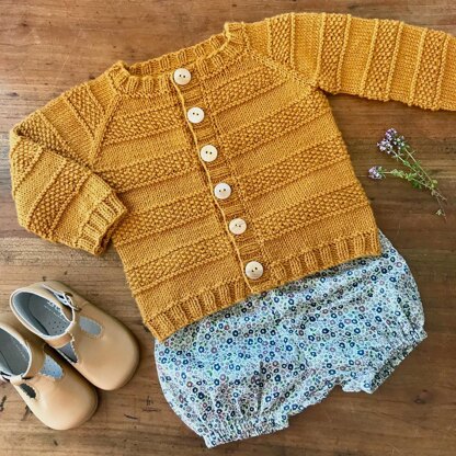The perfect every day cardigan to gallivant in the garden. This design was inspired by the neat, freshly-tilled rows of a vegetable garden. The textured stripe pattern is fun and intuitive to work and makes for an addictive knit! This garment is knit seamlessly from the top down. A few short rows at the back neck ensure a well-fitting neckline. The yoke is worked flat using raglan increases then sleeve stitches are put on hold while the body of the cardigan is worked in one piece. The sleeve stitches are then worked in the round. Stitches are picked up along the garment’s fronts to work the button bands.