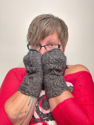 To knit these mitts, you will need: Approximately 150 meters/164 yards worsted weight yarn Set of 4 4.5 mm double-pointed needles (size 7 US) Stitch markers Waste yarn Tapestry needle Crochet hook