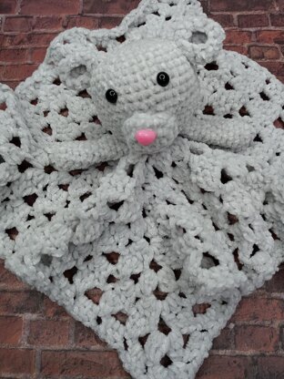 The granny square lovey measures approximately 11"x11" with the Teddy head/arms joined in the center.