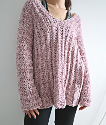 You're gonna love the construction of this crochet top pattern. It's worked from sleeve to sleeve all in one piece with minimal seaming under the sleeves and up the body. This tunic perfectly showcases the lux velvet texture of Bernat Velvet yarn in a fun, wearable top that flatters all shapes.