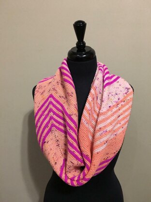 Ventureland is a lightweight, drapey cowl designed to be thrown on and off in quickly fluctuating summer temperatures. I have a hard time ignoring my shelf of handknits when warm weather hits. Even on eighty degree days you will find me with a shawl in my backpack, just in case it’s chilly enough to put on for ten minutes. I usually find myself wearing them at night or indoors. I love air conditioning, do not get me wrong, but I leave the house dressed to be outside- melting- and so I often find things are too cool indoors. Recently, on my Florida parks vacation, I found myself in need of some indoor warmth, but very frustrated wearing the shawl I carried with me. Sure it was fine if I was sitting down, calmly enjoying a meal, but I have two small boys. Things are rarely done “calmly,” even meals, especially while an adventure. I longed for the ease and security of a cowl and decided to frog the shawl project I brought to work on and immediately began to design this summer cowl.