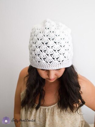 The Venus Shell Slouch takes a standard shell beanie and adds a touch of graceful height for a lacy, open stitch texture suitable for any season.