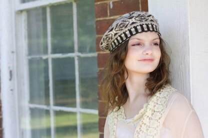 This classic Fair Isle tam is simpler than it looks—each row only uses two colors. The coordinating Vera Marguerite Mittens