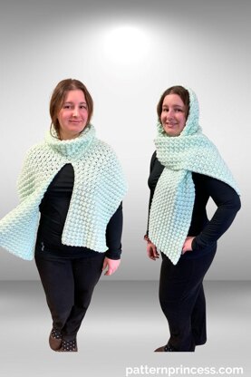 This thoughtfully designed pattern offers the perfect combination of function and fashion, transitioning effortlessly between a hooded scarf, a cozy turtleneck cowl, and a chic shawl.