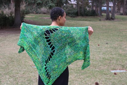 Verde Aqua is a very simple to knit triangle shawl with a twist and turn eyelet pattern.