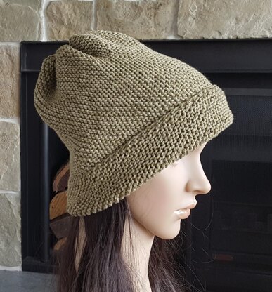 This easy, garter stitch, family Beanie with a turned up brim, is worked diagonally which gives it an unusual look. Worked in Knoll Coast yarn, the lambswool and cotton mix makes for a luxuriously soft beanie.