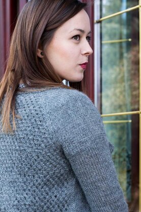 Vermont is a classic top-down raglan sweater knit seamlessly with textured lace back. The pattern contains four styling options: cropped, regular, short sleeve, and long sleeve.