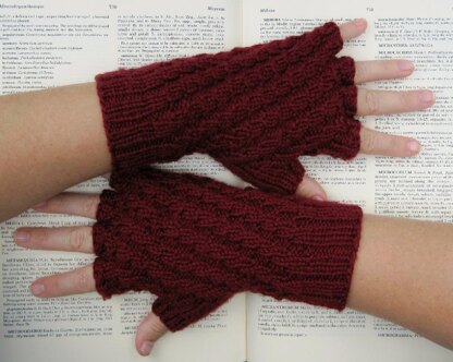Fingerless gloves are such a fabulous opportunity to splurge on soft, luxurious yarns. They don’t take much yardage, and yet you get such joy from wearing them. These gloves were inspired by the facing pages of an old book that had a lovely marbled paper. Opposite sides of a sheet of paper are called the “recto” and the “verso.”