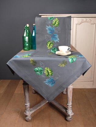 Vervaco Botanical Leaves Tablecloth Embroidery Kit - 80 x 80 cm