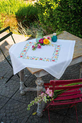 Vervaco Fresh Flowers Tablecloth Cross Stitch Kit - 80cm x 80cm