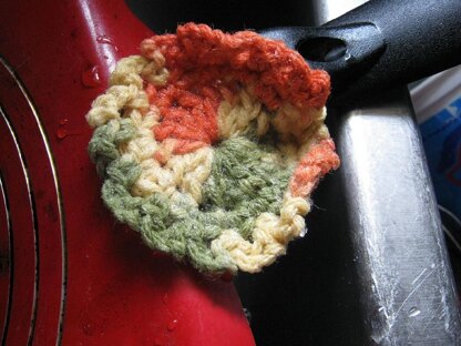 Quick & easy little scrubbie/tawashi, great for using up leftover yarn. Make a few as stocking stuffers or add to a couple of regular dishcloths as a quick Christmas, birthday, or teacher gift.