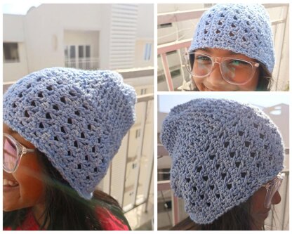 This tutorial/pattern will make a beanie starting bottom-up. It’s worked with stretchy and cozy band and worked upward to make a fitted or a slouchy beanie. It’s snug enough to keep you warm, while it’s also lacy enough to avoid overheating.