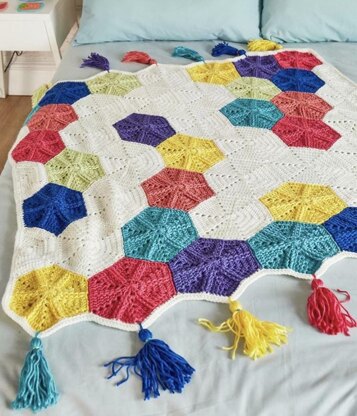 I absolutely loved designing this blanket (originally featured in Crochet Now magazine). The hexagons are so easy to whip up and adding a couple of different stitches here and there has given the blanket a lovely textured finish.