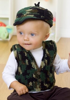 Vest and Hat Baby's Gone a Hunting in Red Heart Super Saver Economy Solids - WR1757
