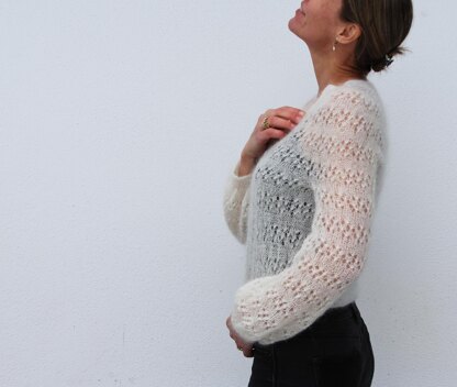 VesterbyCrea No.09-Cardigan er en let og fin cardigan med fitted pasform. Den er strikket med ét hulmønster med én tråd mohair. Modellen strikkes oppefra og ned. I begyndelsen af bærestykket strikkes halskanten og derefter skulderudtagninger. Bærestykket og kroppen strikkes frem og tilbage med skiftevis hulmønster og glatstrik. Krop afsluttes med en ribkant og elastisk aflukning. Ærmekanter samles op i de eksisterende masker og strikkes rundt med hulmønster og retstrik før de afsluttes med en ribkant samt elastisk aflukning. Cardiganen er monteringsfri.