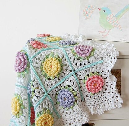 This flower blanket pattern is written in English, using US crochet terms.