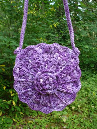 A fabulous round bag that can be crocheted quickly and easily with larger yarn and hooks. Start in the center with a Victorian rose and continue with shells, a gusset and shoulder strap. Crocheted buttons complete the vintage look.
