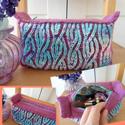 Pattern InfoViena Purse Bag is the perfect little accessory to use for your cosmetics, knitting and crafts tools or just to carry your wallet, glasses and phone with you, zippered bag, fully linen, and knitting using brioche stitch and double knitting, pattern include picture tutorial and step by step instructions to make the complete project, you will love it!