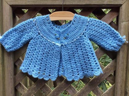 Here is my "Vintage Bluebell Sacque" made for the "One-Skein Crochet Wonders for Babies" book - made with a single skein of Lion Brand Baby Soft.