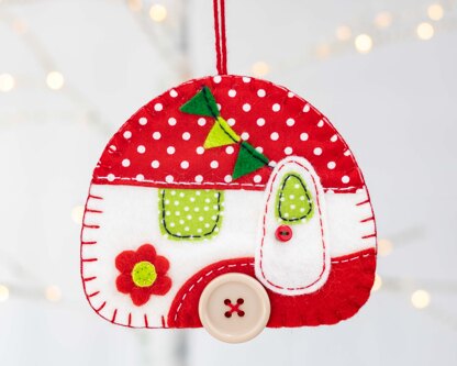 Sew your own embroidered felt vintage caravan ornament with our downloadable PDF pattern. The finished caravan measures 10.5 cm /4 inches wide and has a cotton loop for hanging. All the stitching is done by hand - you don't need a sewing machine. The pattern includes detailed instructions and step by step photos, with actual size templates. The caravan is a detailed project with some small pieces - some sewing experience is needed. You will need small pieces of felt and patterned fabric, buttons for the wheel and doorknob, stranded cotton embroidery thread, a needle and scissors.