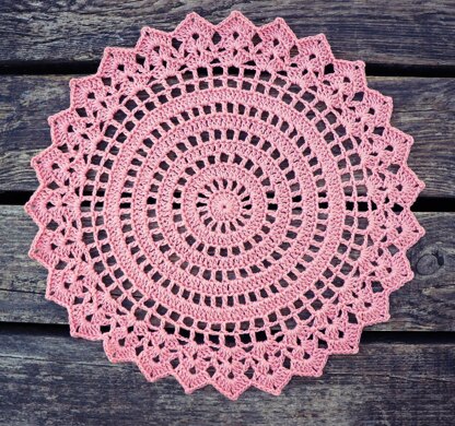 The doily you can make by following this pattern will be approximately 33 cm (13 inches) in diameter.