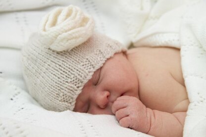 Delightful Vanilla and Cream Vintage Rose Hat. Knitted in 8ply yarn with 4mm needles.